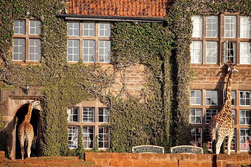 (3) 肯尼亞(長頸鹿莊園)莊園創(chuàng)辦于20世紀(jì)30年代,現(xiàn)在酒店的長頸鹿有7只還有大量的雀鳥等野生動物,主要的特色是酒店有許多的又大又開楊的窗戶,方便長頸鹿探頭進(jìn)入房間,與人互動。